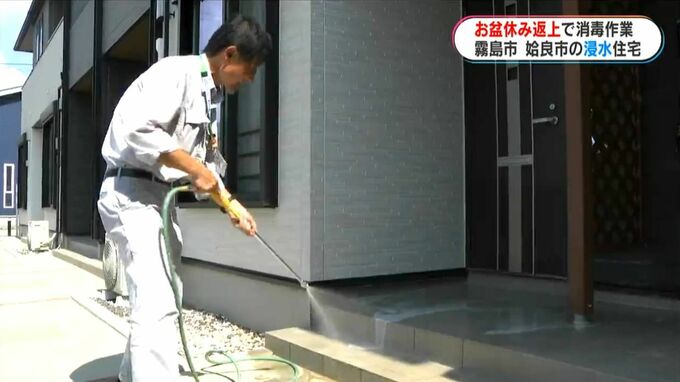 鹿児島県の霧島市と姶良市を中心に被害が出た集中豪雨から10日です。霧島市では浸水した住宅の消毒作業が本格化しています。(記者)「このお宅では膝辺りまで水がきました。いま、市の職員によって消毒作業が続け…