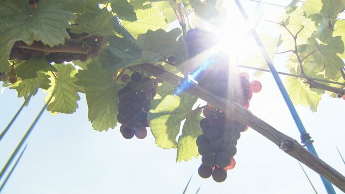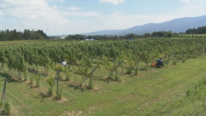 富山県南砺市のワイナリーにあるブドウ畑では去年の不作から一転、ことしは上々の出来です。