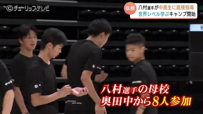 キャンプには八村選手の母校である富山市の奥田中学校からも男女あわせて8人が参加。先輩の八村選手と言葉を交わす様子もみられました。