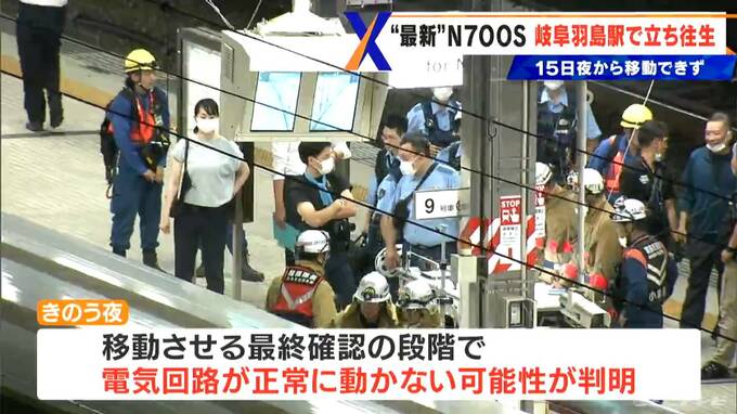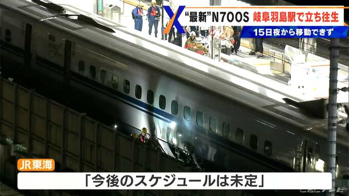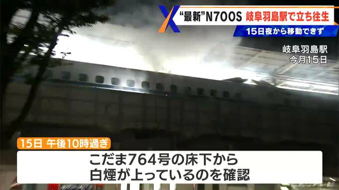 JR東海によりますと煙はモーターの出力を制御する装置から出ていて、17日夜に車両を浜松工場に移動させる予定でしたが、最終確認の段階で電気回路が正常に動かない可能性が判明し、移動を取りやめたため現在も岐阜羽島駅に停車したままです。