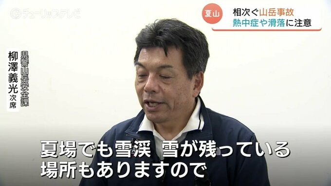 「ことしの傾向をみますと、転落滑落といった遭難がやや増えているのかなと」「特に今回の剱岳の場合は夏場でも雪渓、雪が残っている場所もありますので、例えばアイゼンとかピッケルとか。ただ持っていくだけではなく、それを使いこなせるだけの技術をしっかり付けていただいて入山していただきたいなと」