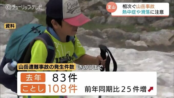 県警によりますと17日までの山岳遭難事故の発生件数は108件と前の年の同じ時期より25件増加しているということです。
