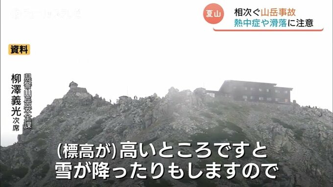 「熱中症ですね。直射日光が当たって遮るものがないとかですね。山の上ではそういう状況もありますので。体調不良の状態で入山しないとか水分食料はしっかり摂っていただくというところは心がけてもらえればと思います」