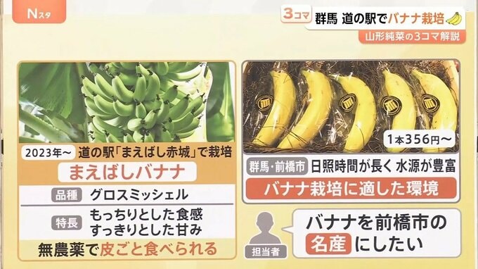 なぜ群馬県前橋市でバナナ栽培をしているのかというと、前橋市は日照時間が長く、水源が豊富で、バナナの栽培に適した環境だといいます。担当者は「バナナを前橋市の名産にしたい」と話していました。