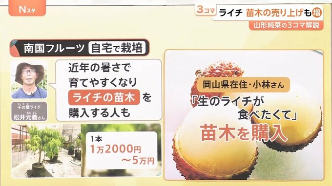 千葉市の「千の葉ライチ」の松井元義さんは「近年の暑さで育てやすくなり、ライチの苗木を購入する人も」と話しています。
