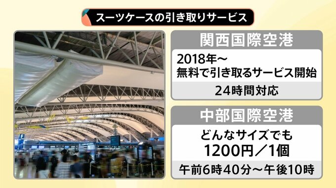 関西国際空港では、2018年から無料でスーツケースを引き取るサービスを24時間対応で開始しました。
