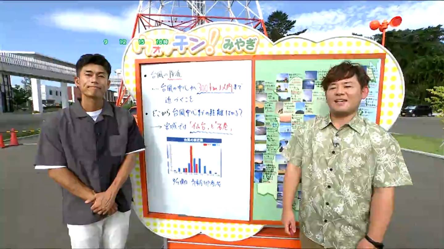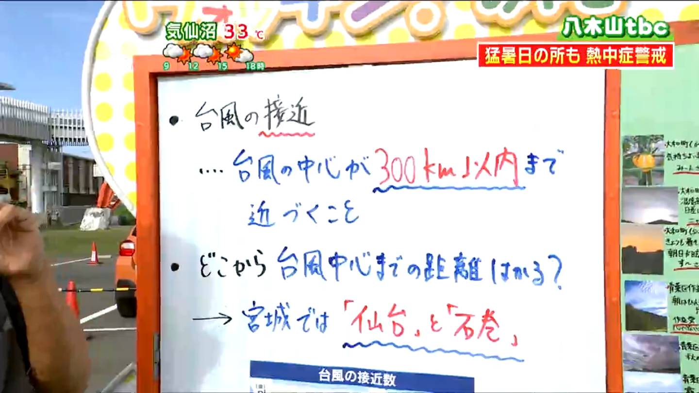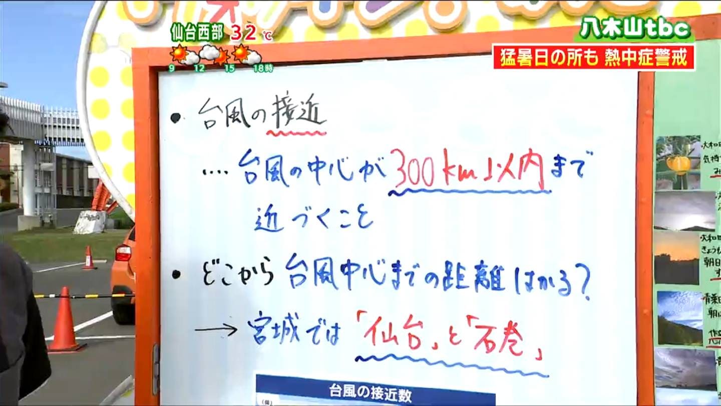 宮城県では「仙台」と「石巻」の2地点から台風の中心までの距離を測ることになっているとのこと。