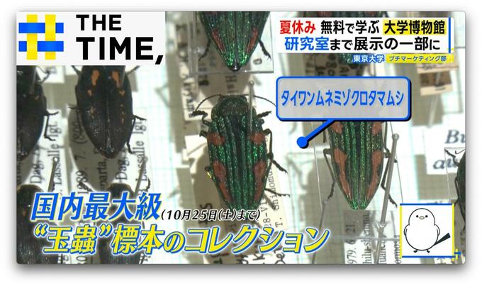 10月25日まで期間限定で企画展「玉蟲-生きた宝石-」も開催中。国内最大級のタマムシ標本のコレクションが見られます。(会場:文京区教育センター)