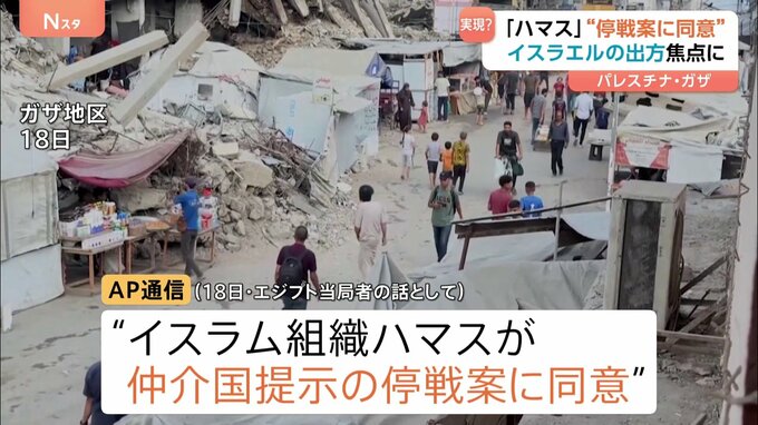 パレスチナ自治区ガザでの戦闘をめぐり、イスラム組織ハマスが仲介国が提示した案に同意したなどとAP通信が報じました。AP通信は18日、イスラエルとハマスとの停戦交渉を仲介するエジプト当局者の話として、ハマス…