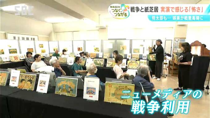 1930年に誕生したという街中で演じられる紙芝居。テレビのない時代に圧倒的な娯楽となっていきました。そうした「ニューメディア」が戦争に利用されたことに、塚原さんは警鐘を鳴らします。