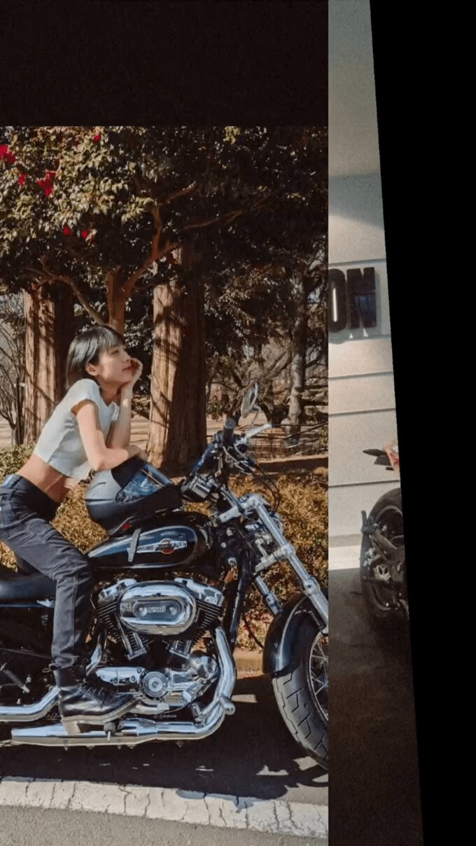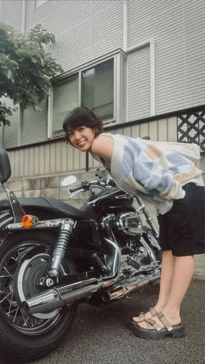 モデルの笠井海夏子さんが自身のインスタグラムで、愛車ハーレーとの写真を動画にして投稿しています。