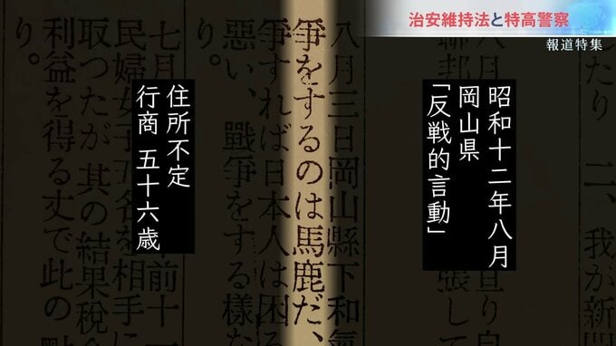 当初、治安維持法は共産主義運動などを取り締まるための法律だったが、戦時体制が進むにつれ、適用範囲を拡大。戦争や軍に反対する一般市民も取り締まりの対象になった。