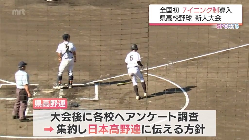 秋の宮崎県大会は従来通りの9イニング制で行う一方、今年の滋賀国スポでは7イニング制が導入され、今後の議論に生かしていくことになっています。