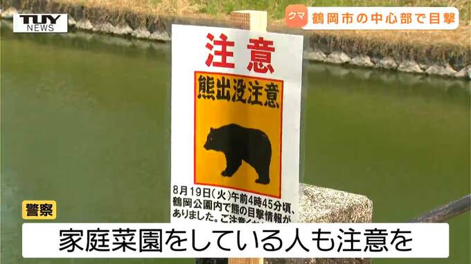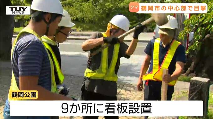きょう、鶴岡公園の9か所の入り口には注意を促す看板が設置されたほか、市と警察がパトロールを行い、クマを見つけた際は、速やかに市や警察に通報するよう呼びかけています。