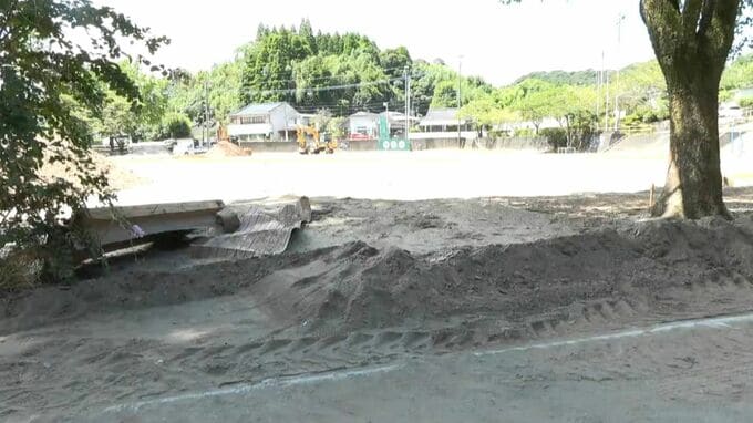 (記者)「竜門小学校の校庭です。土砂が20センチ、またはそれ以上堆積しています」