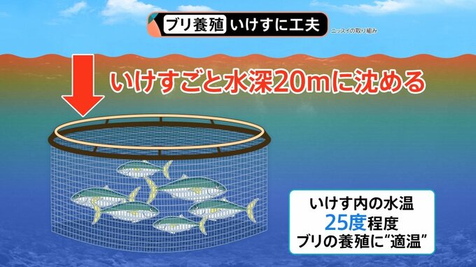 この技術自体は日本の養殖各社が持っているもので、これを夏場に使うことで、いけす内の水温が25℃程度、ブリの養殖の適温にもっていけるということです。