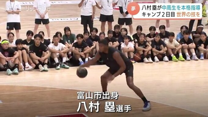 富山市出身の八村塁選手が、日本の中高生を本格指導する夢のキャンプが19日も名古屋市で行われています。2日目は、実際に八村選手が所属チームで行っているトレーニングメニューを体験しました。