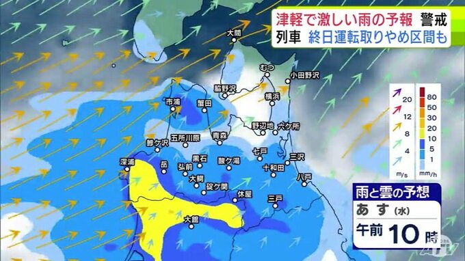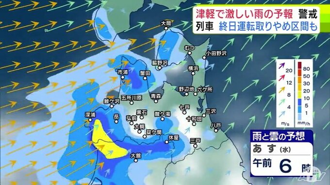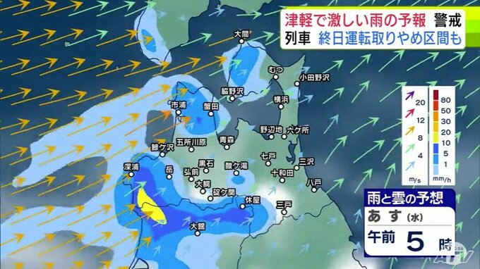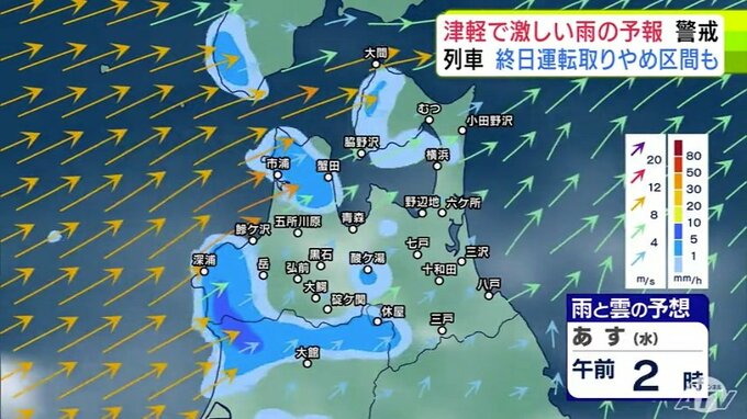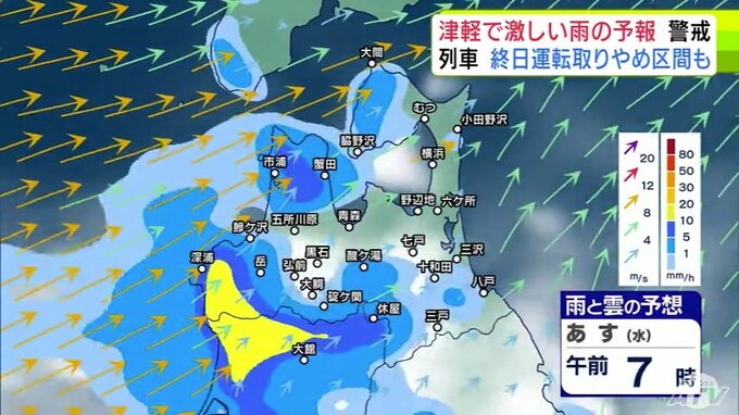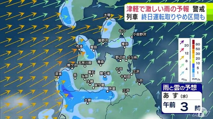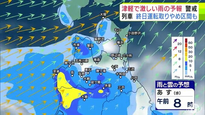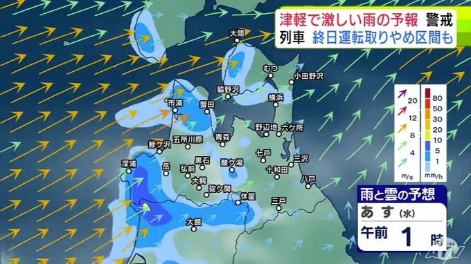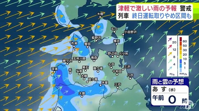 【大雨情報】青森県「津軽」で大雨の見込み 20日までの24時間の予想降雨量が津軽…120ミリ 下北と三八上北…80ミリ 前線が日本海から津軽海峡付近に停滞か【雨と雲の予想シミュレーション】 青森テレビ 2025年8月19日(火) 21:20 国内 【青森県版】明日20日の雨と雲の予想シミュレーション 午前0時~午前11時まで