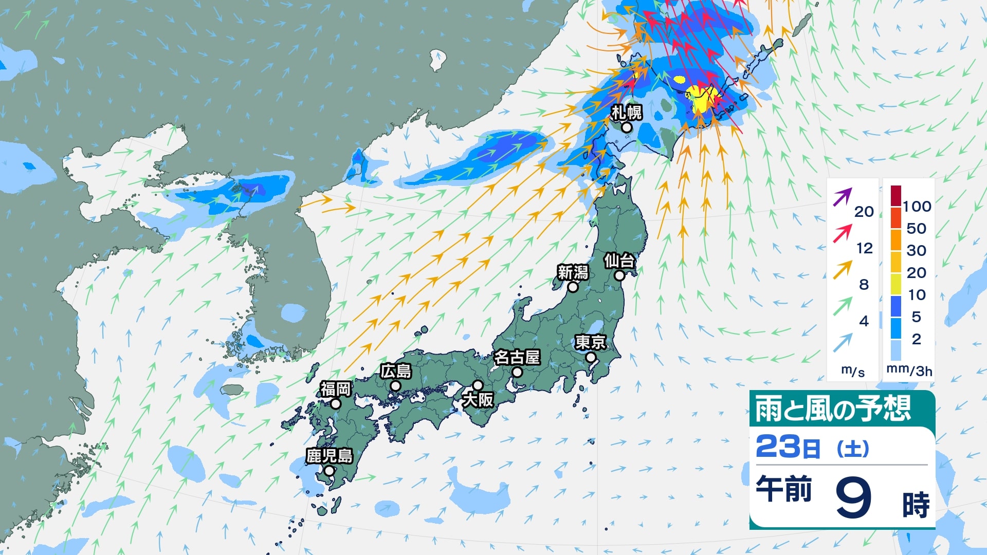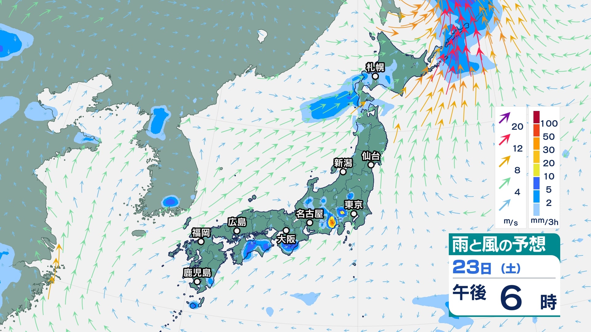 北日本は21日にかけて雷を伴い激しい雨や非常に激しい雨が降って大雨となり、特に東北日本海側は総雨量が多くなるおそれ【雨と風のシミュレーション】 チューリップテレビ 2025年8月20日(水) 07:54 国内 天気 23日(土)雨風シミュレーション
