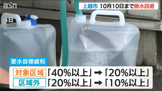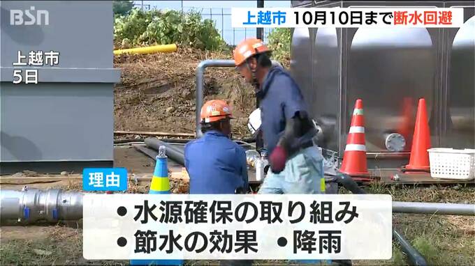 水道水が不足し、節水を呼び掛けている上越市は節水効果や水源確保の取り組みなどにより10月10日まで断水を回避できる見込みになったと発表しました。節水目標も緩和します。