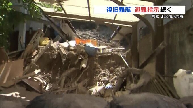 熊本市北区清水万石1丁目の住宅地では、8月10日から11日にかけて降った大雨で裏山が崩れ、今でも雨が降ればさらなる土砂崩れの恐れがあるとして、おととい(18日)、避難指示が発令されました。