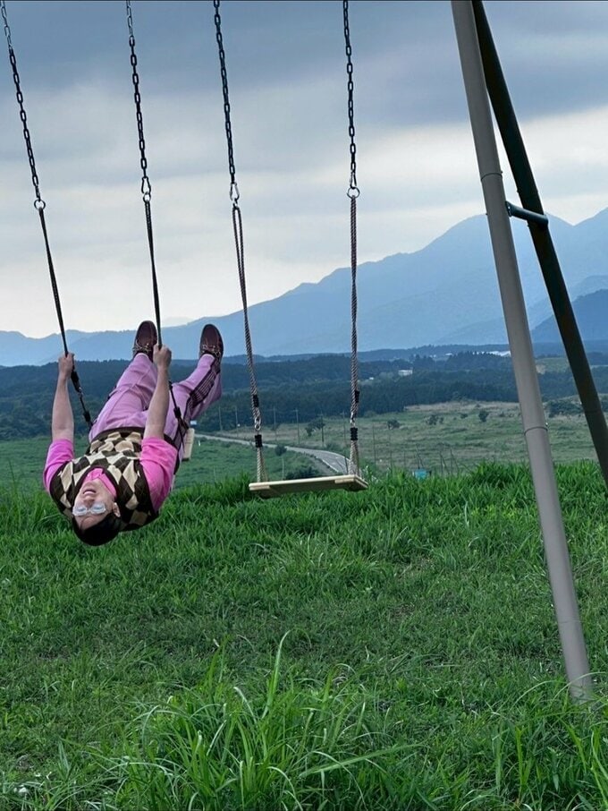 平野紫耀さんは「未確認領域❤」と綴ると、メンバーの岸優太さん、神宮寺勇太さんと一緒にセットの前でポーズを取る姿や、草原で椅子に腰掛けるカット、ブランコで遊ぶ様子、カメラを真っ直ぐに見つめるショットなど、13枚の写真をアップ。