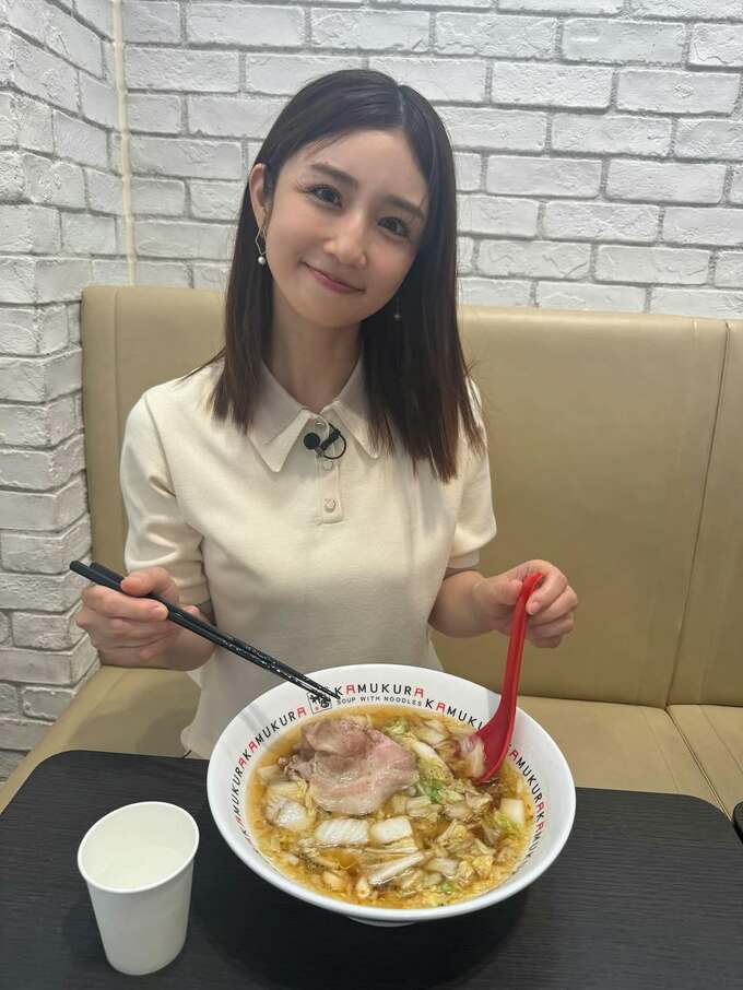 小倉さんは、インスタグラムで「仕事の合間にみんなでラーメンを食べました」と投稿。アイボリー色のシャツを着た小倉さんが、チャーシューや白菜がのったラーメンを前に笑顔を浮かべている写真を公開しました。「ラーメンって幸せになります笑」というコメントからは、食事を楽しむ様子が伝わってきます。