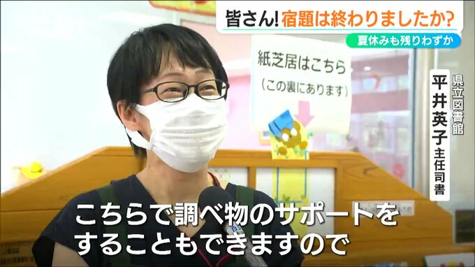 「まだ自由研究終わってないよという人でも、調べ物の本もまだ図書館にありますし、こちらで調べ物ののサポートすることもできます」
