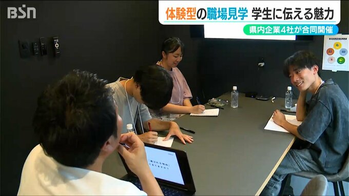新潟県内の地元企業4社が合同で、体験型の職場見学会『オープンカンパニー』を20日に開催し、県内の学生に向けて“地元企業の魅力”を発信しました。建設会社『小野組』の呼び掛けで『三幸製菓』『山忠』『語れ。…