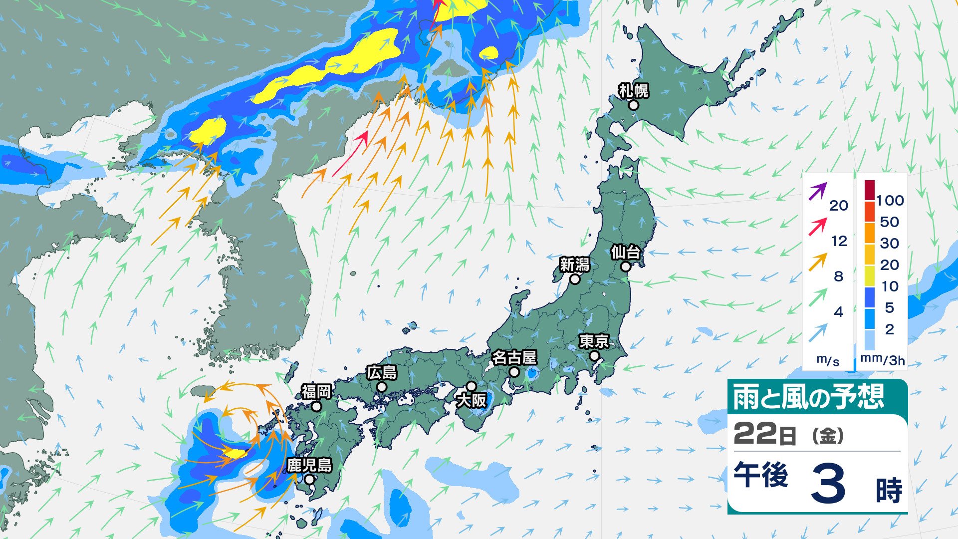 【大雨情報】青森県、秋田県、岩手県は20日夜遅くから21日未明にかけて『線状降水帯』発生の可能性 東北北部は24時間降水量が8月の平年の1か月の降水量を超える記録的な大雨となっている所も【雨と風のシミュレーション】 チューリップテレビ 2025年8月20日(水) 17:25 国内 天気 22日(金)雨と風のシミュレーション