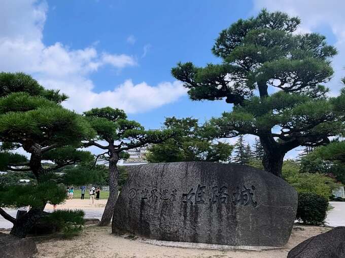 投稿された写真には、「姫路 」と書かれた駅名標の前での自撮りや、青空の下にそびえる白鷺の姫路城の姿が捉えられています。また、「世界遺産 姫路城」と刻まれた石碑の写真も投稿されており、家族で城跡を巡った様子が伝わってきます。