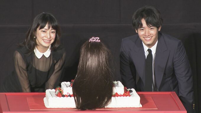 そして、8月22日は菅野美穂さんの48歳の誕生日ということで一足先にサプライズでお祝い。驚く菅野さんの前に、生首を模したバースデーケーキが登場。菅野さんは “生首ケーキとは!なんとユニークな!この映画にふさわしい” と笑顔を見せました。