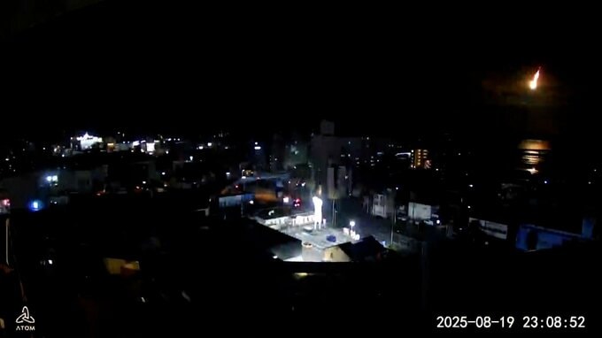鹿児島市内の別のカメラでは夜空が明るく光った直後、上空からオレンジ色の物体が落下しているようにみえます。