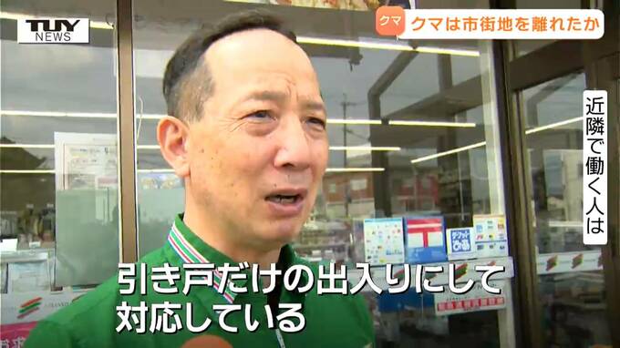 けさ、現場付近のコンビニではクマが店内に侵入しないよう対策を行っていました。