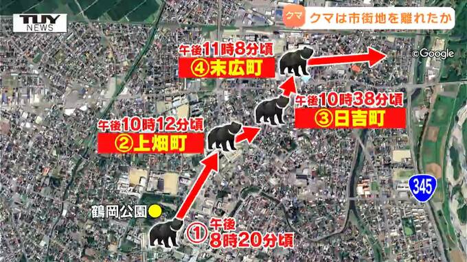 クマはその後、鶴岡公園近くの鶴岡工業高校の正門付近でも目撃されています。