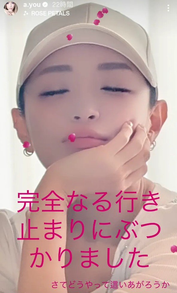 浜崎あゆみさんが自身のインスタグラムのストーリー機能を更新し、自身の心境を投稿。