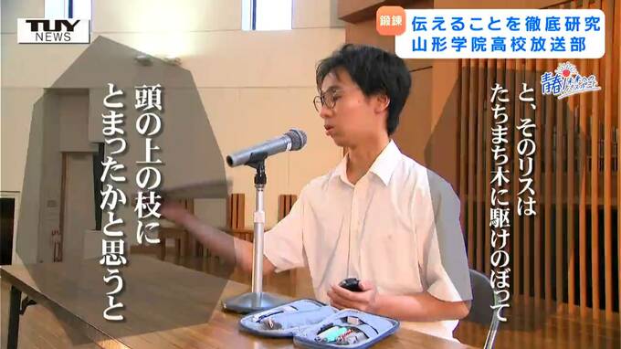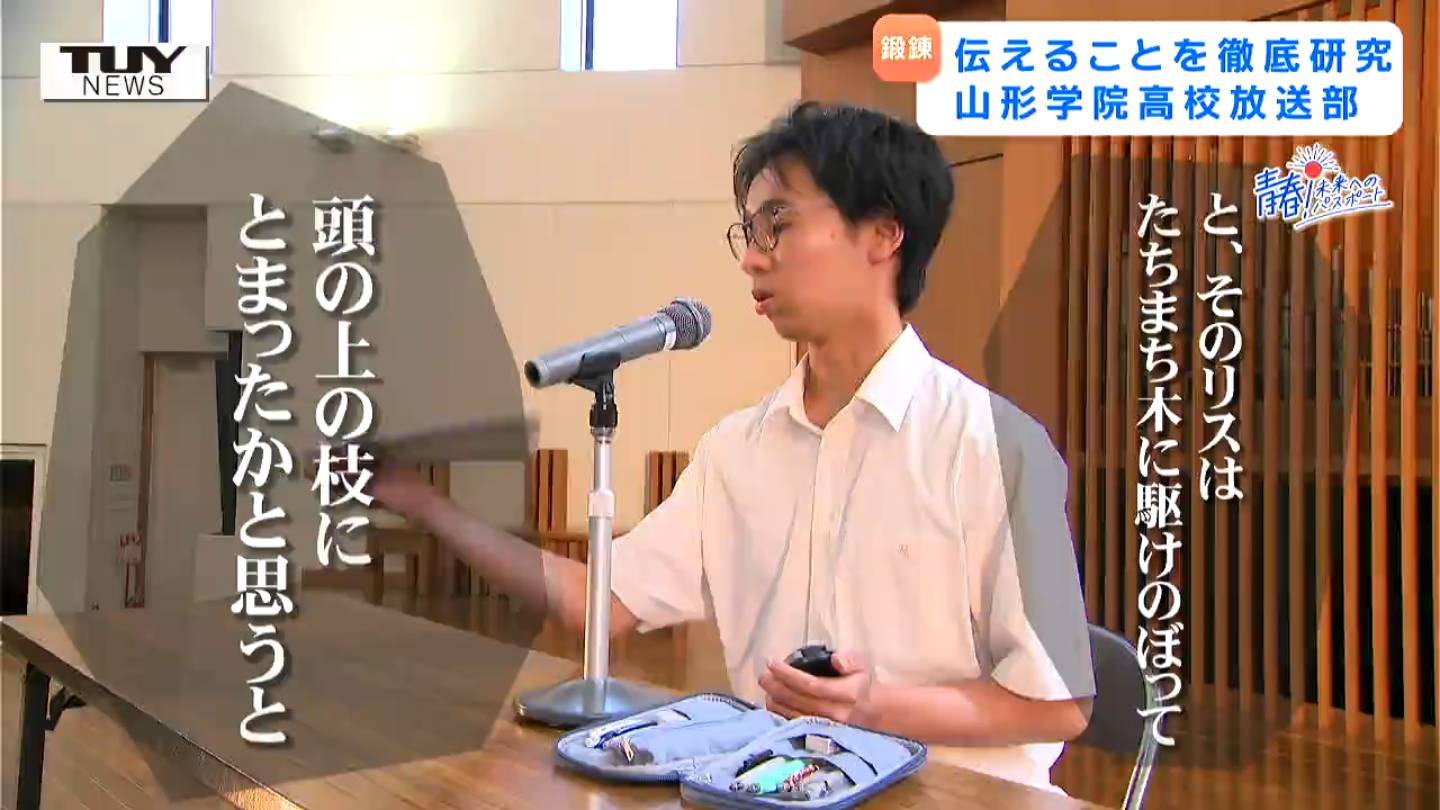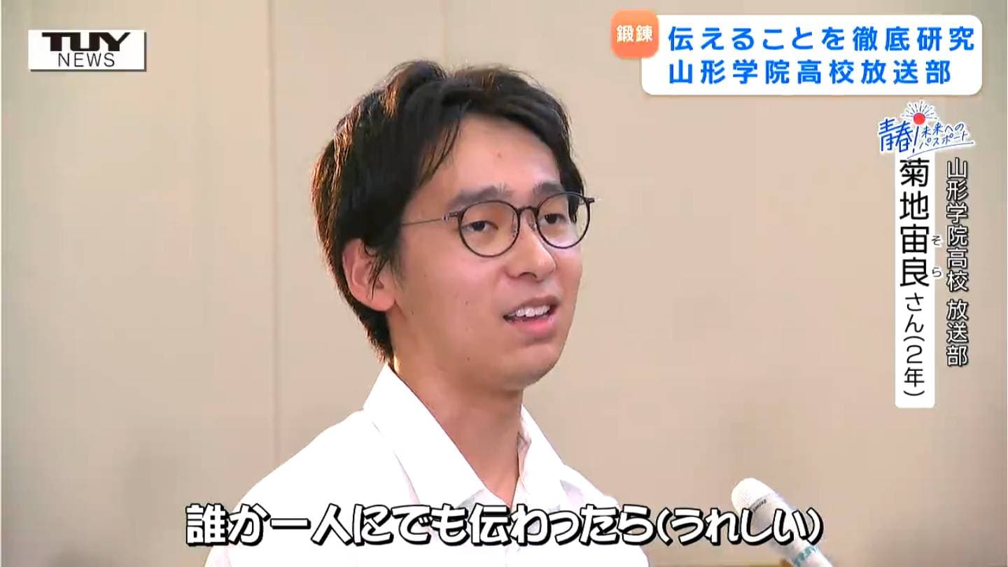 【企画】青春!未来へのパスポート 山形学院高校・放送部 届ける相手を「想像」して分かりやすく「伝える」目指すは東北大会! 朗読や映像制作など様々な分野で「伝える」を探究! To view this video please enable JavaScript, and consider upgrading to a web browser that supports HTML5 video テレビユー山形 2025年8月20日(水) 19:01 国内 ここからは、「青春!未来へのパスポート」。 山形県内で未来に向かってがんばる高校生を応援するコーナーです。 きょうは、朗読や映像制作など、様々な分野で「伝える」ことを探求する、山形学院高校放送部を紹介します。