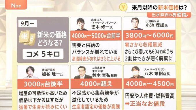 【9月以降の新米(5キロ)の価格どうなる?】専門家らの試算