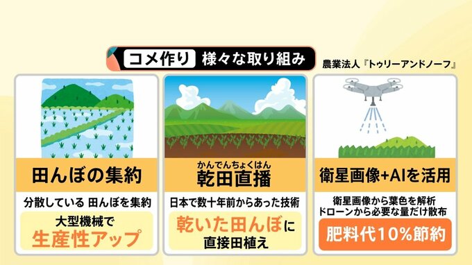 【コメ作り 様々な取り組み】農業法人「トゥリーアンドノーフ」