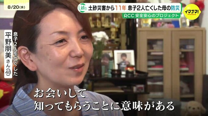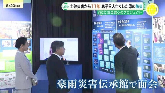 6月、広島土砂災害の被災地を天皇皇后両陛下が訪問されました。平野さんと夫の学さんは豪雨災害伝承館で両陛下と面会。「前を向いて歩いてきたことを認めていただけた」とふり返ります。
