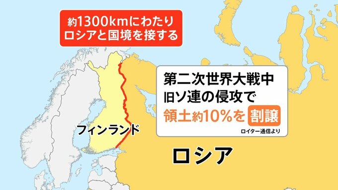 ▼旧ソ連から侵攻を受けてきた歴史を説明した上で、「第二次世界大戦中の1944年には、領土の約10%を割譲する(ロイター通信より)」という解決策が見つかったこと