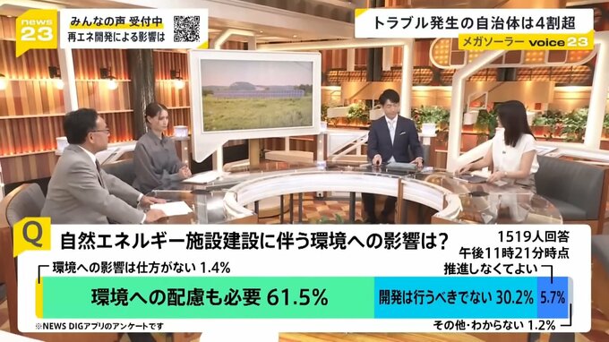 総務省によりますと、太陽光発電を巡ってトラブルが起きたという自治体が既に4割を超えています。具体的な内容は、雑草などが繁茂するなど十分な管理がなされていない、土砂災害発生の懸念があるなど。ですから、設置した後のことをしっかり考えなければいけないということですよね。