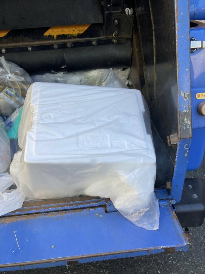 滝沢秀一さんは、発泡スチロールの箱が、裸のままゴミ集積場に置かれた画像とともに、「プラ回収の清掃員に、発泡スチロールが袋に入っていると助かると聞きました!」と投稿。
