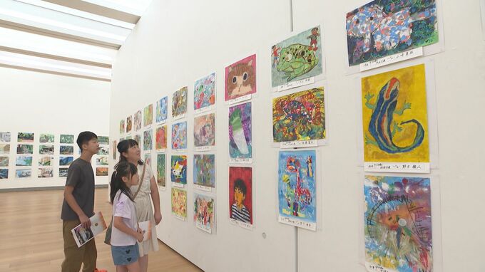 このほか、身近な学校生活や自然などを題材に、子どもたちが生き生きと描いた力作が並んでいます。この美術展は県立美術館で8月26日まで開かれています。