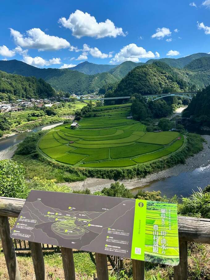 中でも、美しい棚田を展望する画像は圧巻。あらぎ島という美しい棚田で、日本の棚田百選に選ばれ、周囲の景観とともに「蘭島及び三田・清水の農山村景観」として国の重要文化的景観に選定されています。HIROさんは緑豊かな山々の絶景を堪能したようです。