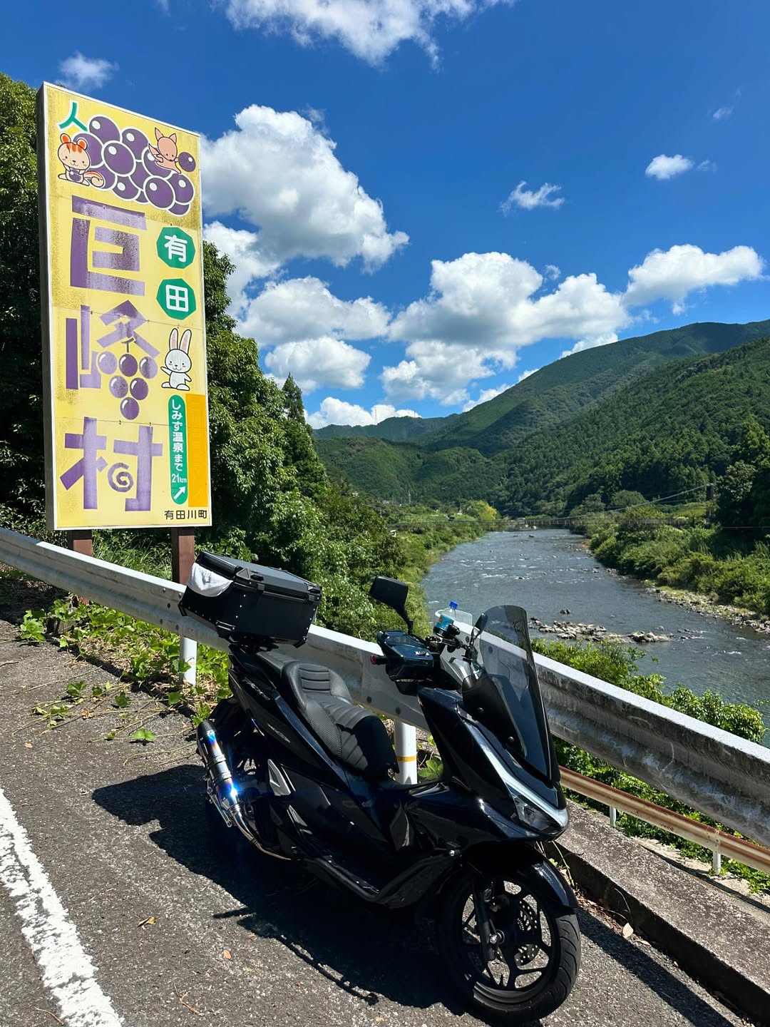 ツーリングのルートは「バイク屋〜海南〜山奥??〜有田川〜蔵王橋〜巨峰村〜あらぎ島」と綴り、和歌山・有田川町周辺の美しい自然を満喫できるコースで、HIROさんは、訪れた場所の画像を投稿しています。