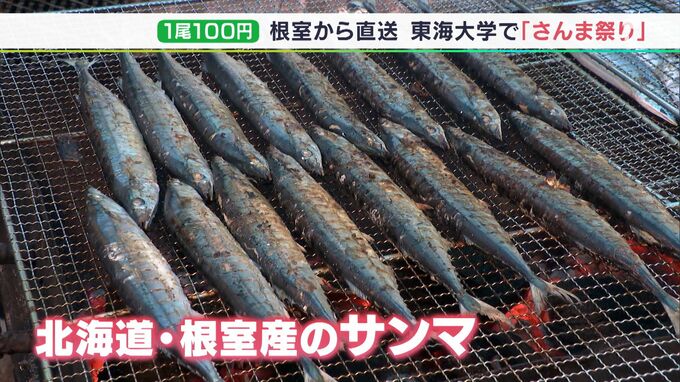 近年、不漁が伝えられている秋の味覚「サンマ」。ここ数年、価格が上昇するなか、1尾100円で味わえるイベントが11月23日、静岡市清水区の大学で開かれました。網に置かれたのは、あぶらがのった北海道・根室産のサ…