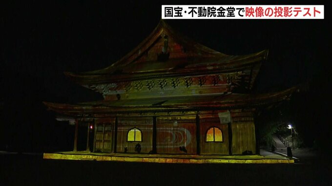 広島市東区にある国宝の不動院 金堂で行われたのは、プロジェクションマッピングイベント「光でつなぐ歴史とみらい」の投影テストです。