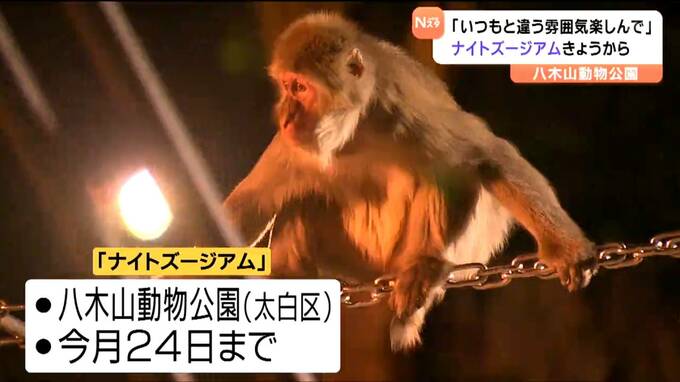 仙台市太白区の八木山動物公園で毎年夏休み期間に合わせて行われている「ナイトズージアム」。期間限定で、開園時間を午後9時まで延長し、ゾウやホッキョググマ、サルなどほとんどの動物を公開します。
