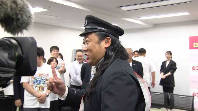 博多バスターミナルに登場したのは、一日館長に任命された北九州市出身でお笑いトリオ・ロバートの秋山竜次さん。